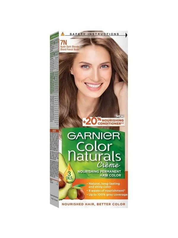 استمتعي بلون طبيعي يدوم طويلاً مع صبغة غارنييه كولور ناتشرلز كريم – أشقر غامق طبيعي رقم 7، تركيبة غنية بزيوت مغذية تمنح شعرك لونًا مشرقًا وملمسًا ناعمًا من أول استعمال.