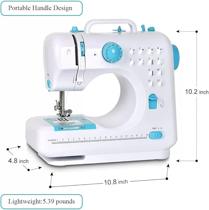 ابدئي مشروعك الخاص أو أجري التعديلات في المنزل بسهولة مع ماكينة الخياطة الكهربائية الصغيرة. تحتوي على 12 نمط غرزة، سرعات متعددة، وإضاءة LED مدمجة. مناسبة للمبتدئين والمحترفين في تصميم وخياطة الملابس والأقمشة.